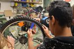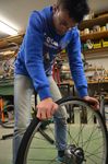 In der 5. und 6. Unterrichtsstunde konnten interessierte Schüler aus den beiden Gruppen noch die Funktionsweise eines Nabendynamos kennen lernen und erfuhren, wie man die Ritsel von einem Hinterrad abmontieren kann. Auch bauten sie die Achse aus einem Laufrad aus und speichten stattdessen den Nabendynamo ein. Im Anschluss zeigte Herr Aumüller den Jungen und Mädchen, wie man das Laufrad richtig zentriert, so dass sich kein Achter (Seiten- und Höhenschlag) mehr darin befindet.