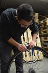 Im Rahmen des Projektes Meister an Schulen besuchte Herr Aumüller unsere Schule für einen ganzen Vormittag. Zunächst konnten die Schüler der Klasse 8a von Frau Seewald, aufgeteilt in zwei Gruppen, für je eine Doppelstunde, den Beruf des Zweiradmechanikers kennen lernen. Am Anfang stand jeweils eine Kontrolle der Bauteile des Fahrrads. Funktionieren die Bremsen richtig, läuft die Schaltung flüssig, ist ausreichend Öl auf der Kette, Luft in den Schläuchen oder ein Achter in den Laufrädern. Anschließend beseitigten die Schüler mit Hilfe von Herrn Aumüller die Mängel. Bei fast allen Hinterrädern mussten die Jugendlichen neue die Schläuche austauschen. Dabei zeigte der Fachmann ihnen an aufgesägten Felgen deren Aufbau und gab Tipps, wie man am besten den Mantel vom Laufrad bekommt.